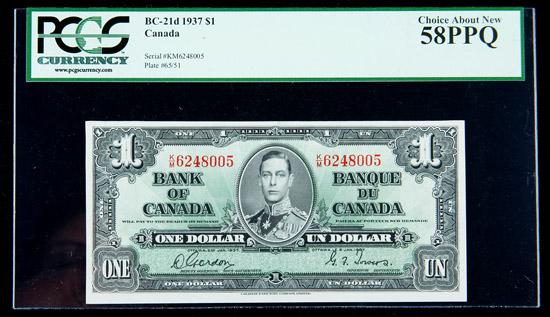 BC-21d 1937 $1. PCGS Choice About New 58PPQ. The second of two consecutive.