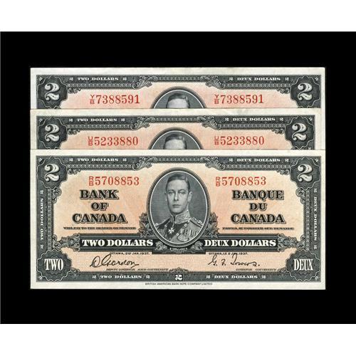 <B>BC-22b $2 1937. Three Examples. VF; AU; CU.</B></I><BR><I>From The Halton Lake Collection</B></I>