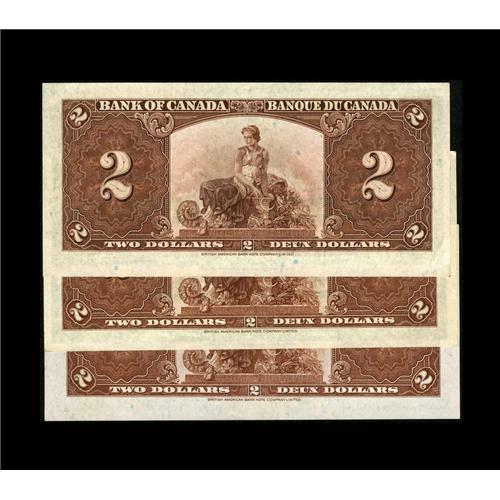 <B>BC-22b $2 1937. Three Examples.</B></I><BR>A nice trio of Twos with one grading <B>Choice AU,</B></I> the other two <B>Choice CU.</B></I><BR><I>From The Halton Lake Collection</B></I>