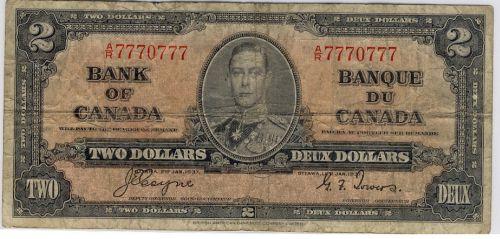 BC-22c 1937 $2 two digit "RADAR" note. A/R7770777 VG.