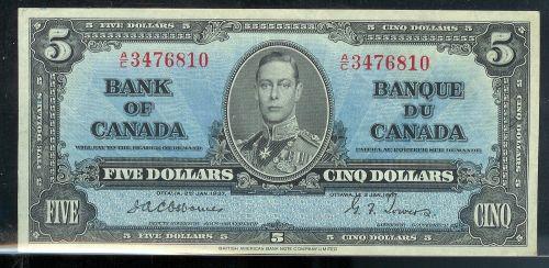 BC-23a 1937 $5 Osborne A/C3476810 EF-AU, well centered, clean and very bright! An attractive note.