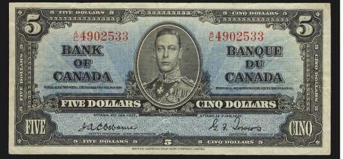BC-23a 1937 $5 Osborne A/C4902533 EF, a bright note!