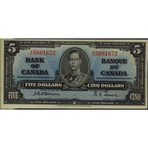 BC-23a 1937 $5 Osborne A/C5081672 CCCS UNC-63. A very rare note in this designation. Bright and vibrant colours