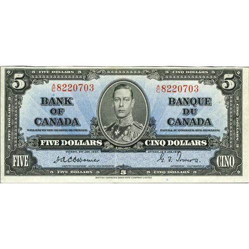 <B>BC-23a $5 1937.</B></I><BR>Dark inks on this <B>Extremely Fine</B></I> $5.<BR><I>From The Halton Lake Collection</B></I>