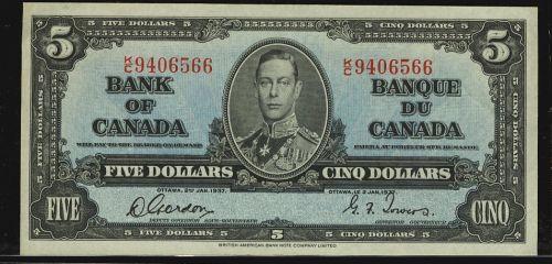 BC-23b 1937 $5 Gordon-Towers K/C9406566 Choice uncirculated.