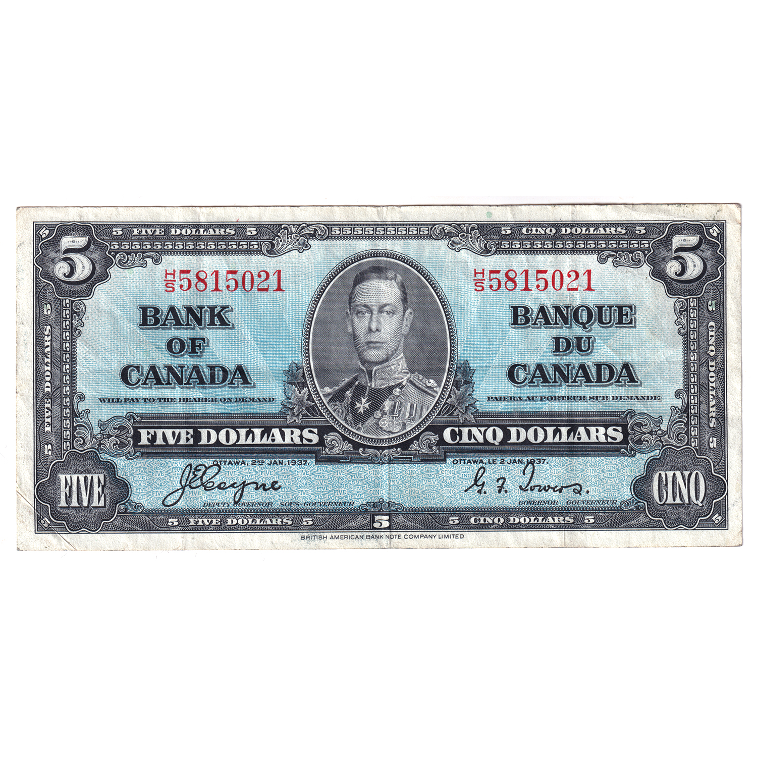 BC-23c 1937 $5 VF-EF Coyne-Towers SN: H/S5815021