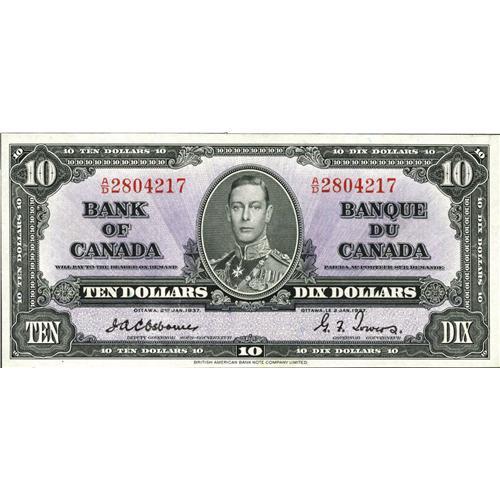 <B>BC-24a $10 1937.</B></I><BR>A couple of folds are noticed on this lightly handled $10. <B>Extremely Fine-About Uncirculated.</B></I><BR><I>From The Halton Lake Collection</B></I>
