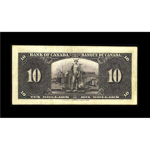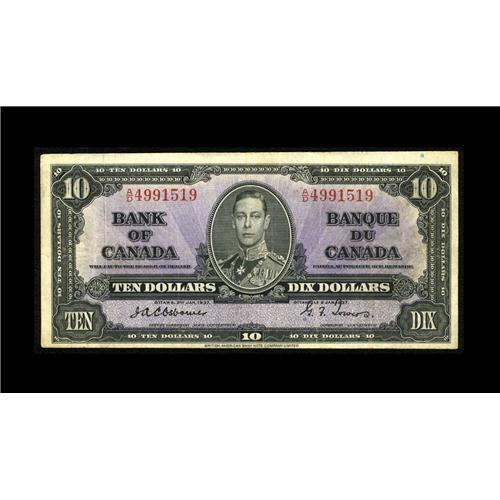 <B>BC-24a $10 1937.</B></I><BR>A scarce note with light soiling in the margins and an edge nick. <B>Very Fine.</B></I><BR><I>From The Halton Lake Collection</B></I>