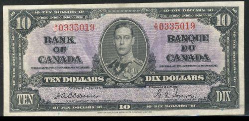 BC-24a 1937 $10 Osborne A/D0335019 original VF-EF, a nice bright note.