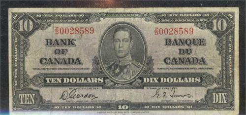 BC-24b 1937 $10 Gordon-Towers RARE prefix Z/D0028589 F-VF.