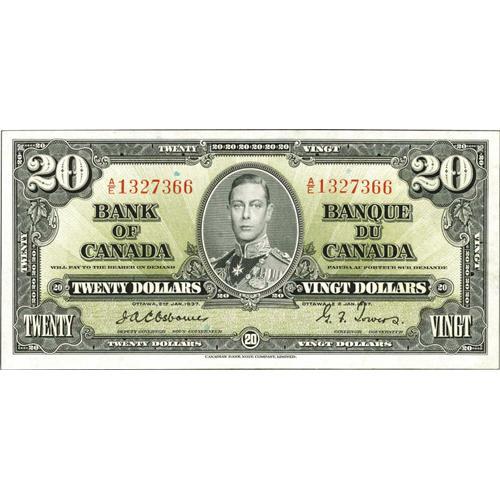 <B>BC-25a $20 1937.</B></I><BR>A center fold is found on this widely margined $20. <B>About Uncirculated.</B></I><BR><I>From The Halton Lake Collection</B></I>