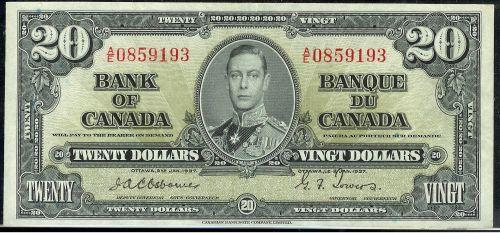 BC-25a $20 1937 Osborne-Towers A/E0859193. A lovely AU example. Scarce!