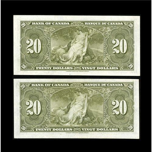 <B>BC-25b $20 1937. Two Examples.</B></I><BR>A D/E and E/E note are included in this lot. <B>Choice Crisp Uncirculated.</B></I><BR><I>From The Halton Lake Collection</B></I>