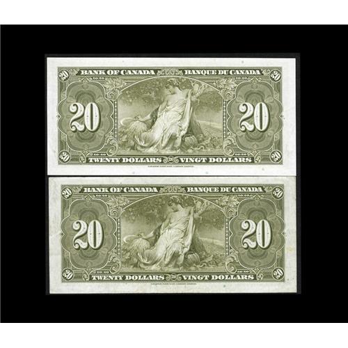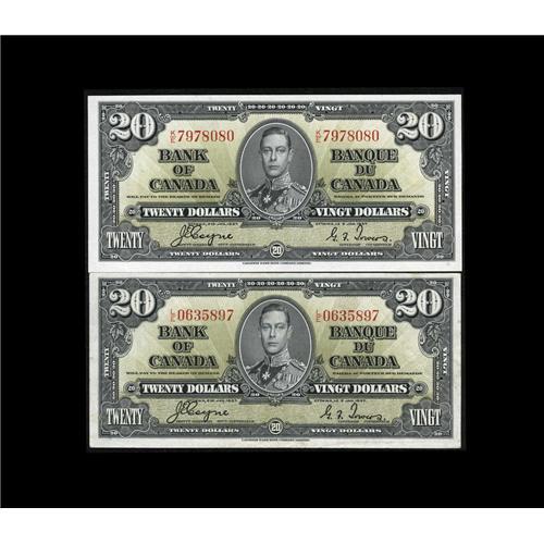 <B>BC-25c $20 1937. Two Examples.</B></I><BR>The better prefix letter L/E is included in this lot with a K/E note. <B>Choice Crisp Uncirculated.</B></I><BR><I>From The Halton Lake Collection</B></I>