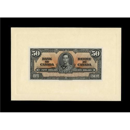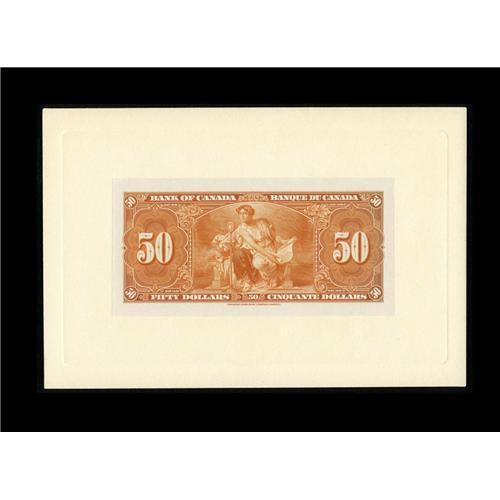 <B>BC-26FP; BC-26BP $50 1937 Face and Back Proofs.</B></I><BR>Both of these beautiful $50 proofs have two shadow cancels. All of the proofs in this collection measure approximately 9x6 inches unless stated otherwise. <B>Choice Crisp Uncirculated</B></I> mounted on card stock with pencilled control numbers on the back.<BR><I>From The Halton Lake Collection</B></I>