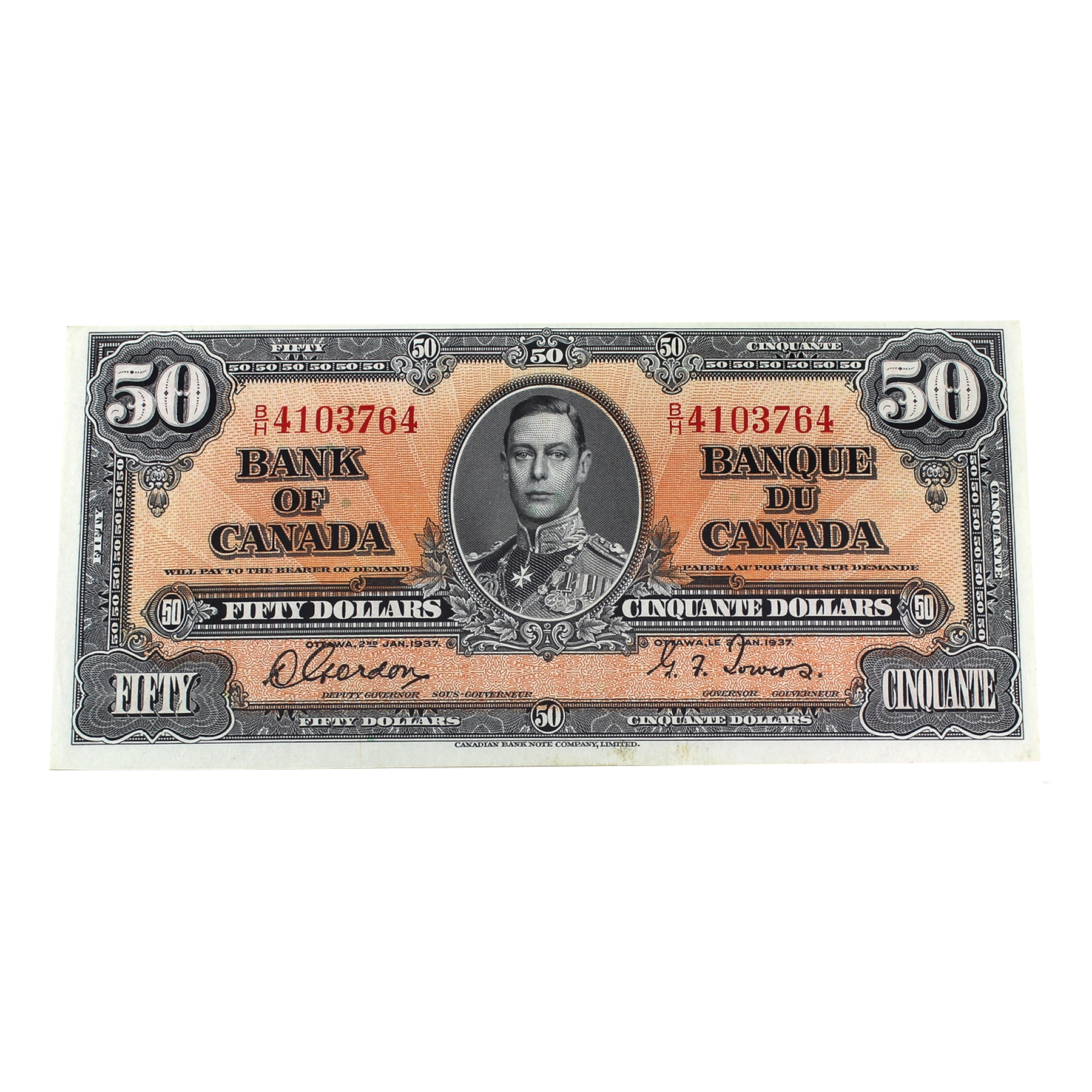 BC-26b 1937 $50 BCS AU58 Original Gordon-Towers Changeover SN: B/H4103764