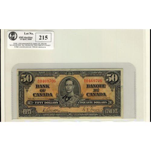 BC-26b 1937 $50 Gordon-Towers B/H0469706. VF/EF.