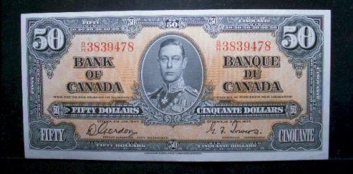 BC-26b 1937 $50 Gordon-Towers B/H3839478 A bright and clean EF-AU. Looks better than the grade assigned.
