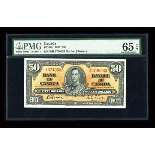 <B>BC-26b $50 1937</B></I><BR> A lovely example with great color and eye appeal. PMG has holdered this note after grading it <B>Gem Uncirculated 65 EPQ</B></I> and its Exceptional Paper Quality can be seen even through the PMG holder. <BR><I>From The John Ameen Collection</B></I><BR><BR><b>Shipping:</b> Coins & Currency (<a target="_blank" href="http://www.heritageauctions.com/common/shipping.php">view shipping information</a>)