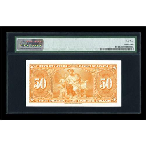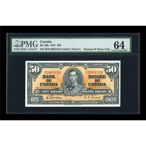 <B>BC-26b $50 1937</B></I><BR> A lovely example of this vividly orange tinted note. It's been graded <B>Choice Uncirculated 64 </B></I>by PMG, and could easily have gone into a Gem holder...it's that nice.<BR><I>From The Thomas M. Flynn Collection</B></I><BR><BR><b>Shipping:</b> Coins & Currency (<a target="_blank" href="http://www.heritageauctions.com/common/shipping.php">view shipping information</a>)