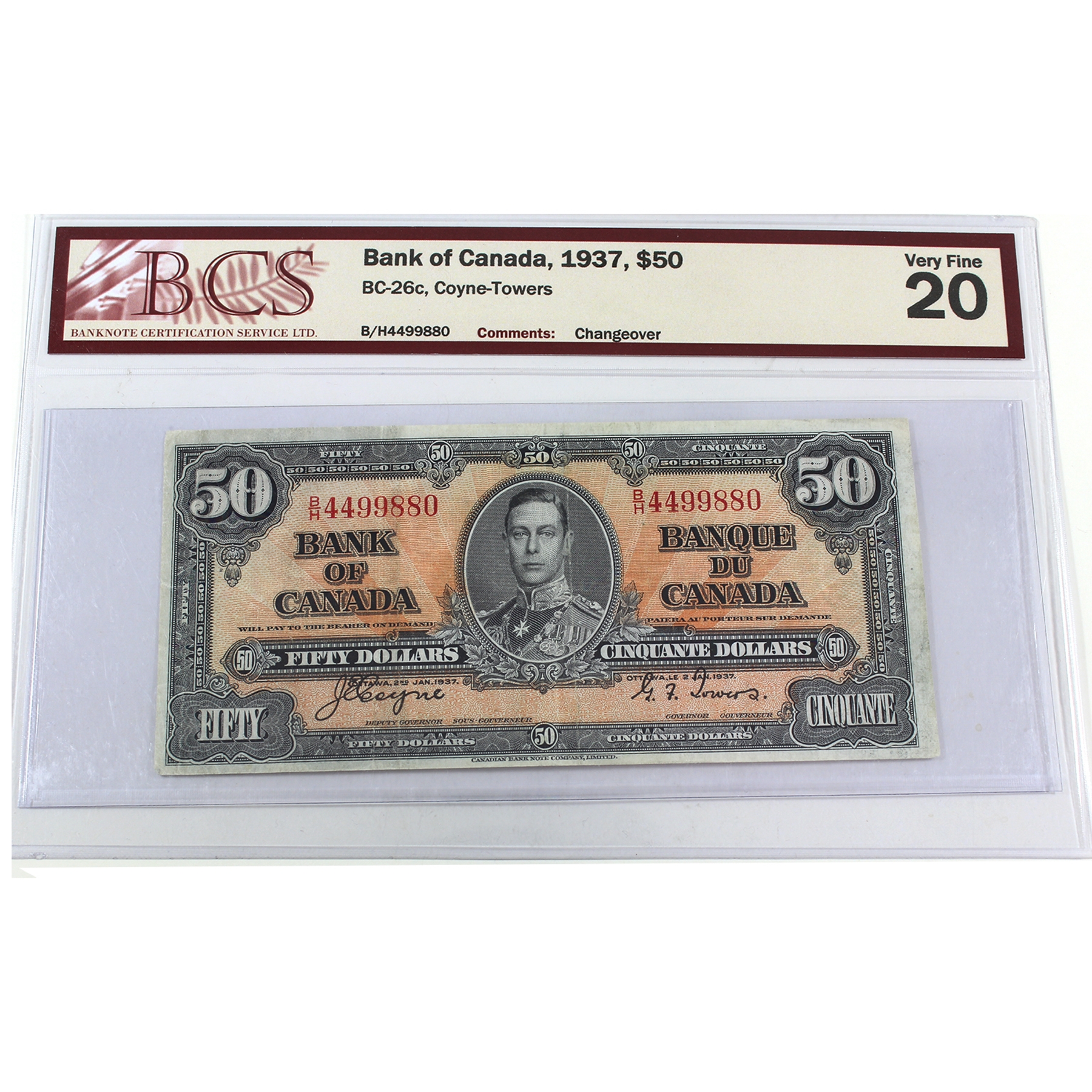 BC-26c 1937 $50 BCS VF20 Coyne-Towers Changeover SN: B/H4499880
