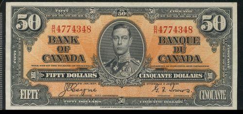 BC-26c 1937 $50 Coyne-Towers B/H4774348 a well centered uncirculated example. Scarce.