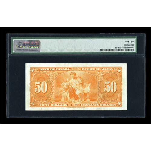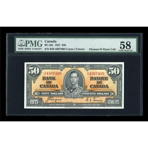 <B>BC-26c $50 1937</B></I><BR> A beautiful example with great color and little evidence of any actual circulation. PMG <B>Choice About Uncirculated 58.</B></I><BR><I>From The Thomas M. Flynn Collection</B></I><BR><BR><b>Shipping:</b> Coins & Currency (<a target="_blank" href="http://www.heritageauctions.com/common/shipping.php">view shipping information</a>)