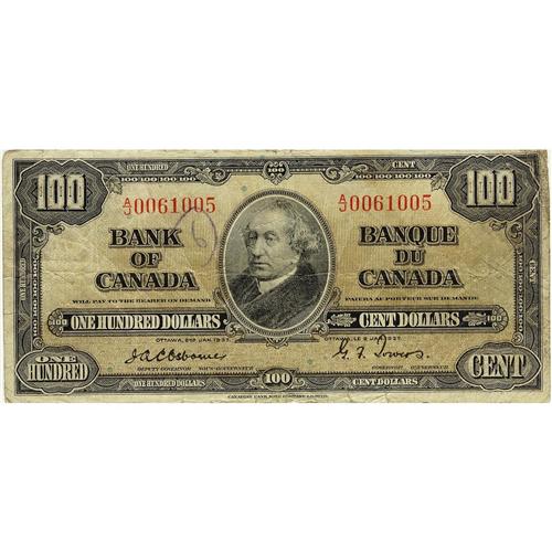 BC-27a 1937 $100 A/J0061005 Osborne-Towers VG+, light w