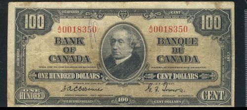 BC-27a 1937 $100 Osborne A/J0018350 Fine, light writing on serial number. An affordable example.
