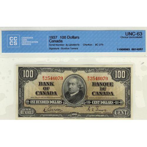 BC-27b 1937 $100 Gordon CCCS UNC-63