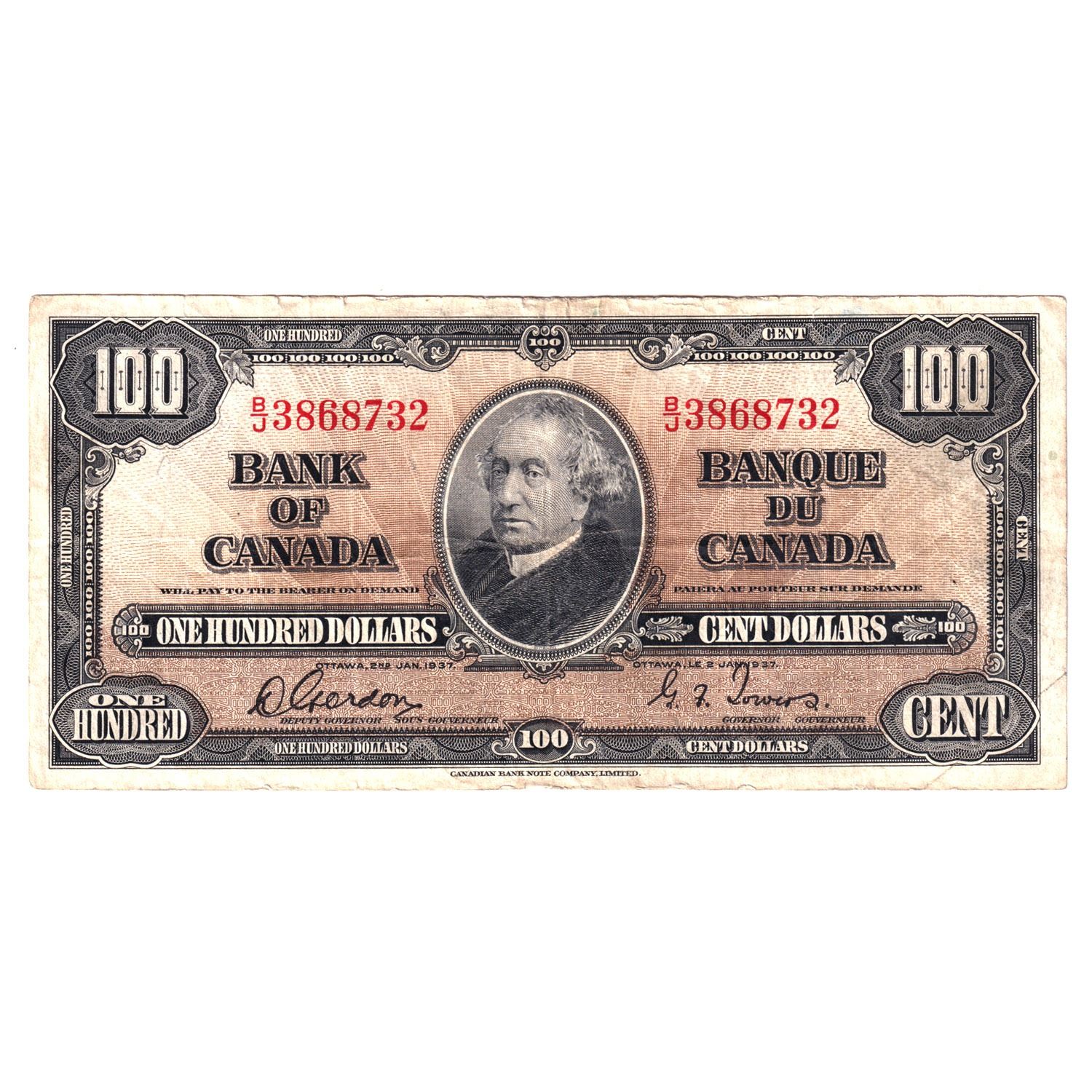 BC-27b 1937 Bank of Canada $100, Gordon-Towers, S/N: B/J3868732, F-VF (Tears).