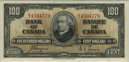 BC-27c 1937 $100 Coyne-Towers B/J4594779. A choice uncirculated example. Excellent centering.