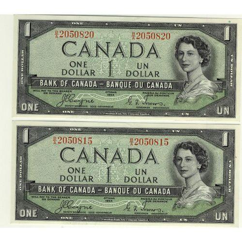 BC-29a 1954 DF $1 #BA2050815/BA2050820. Lot of two notes both original AU examples.