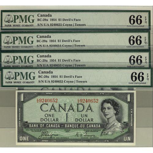 BC-29a 1954 DF $1 #EA9240652 to 655 PMG Gem UNC66 EPQ. Lot of 4 consecutive notes.