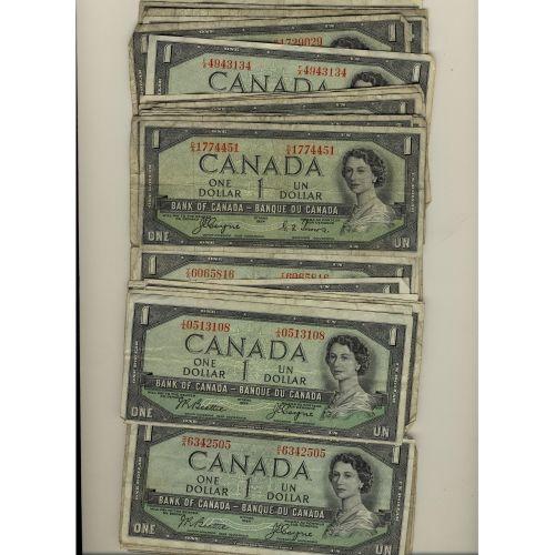 BC-29a and BC-29b Devil's $1. Lot of 53 notes, all Devil's Face varieties. VG to Fine.