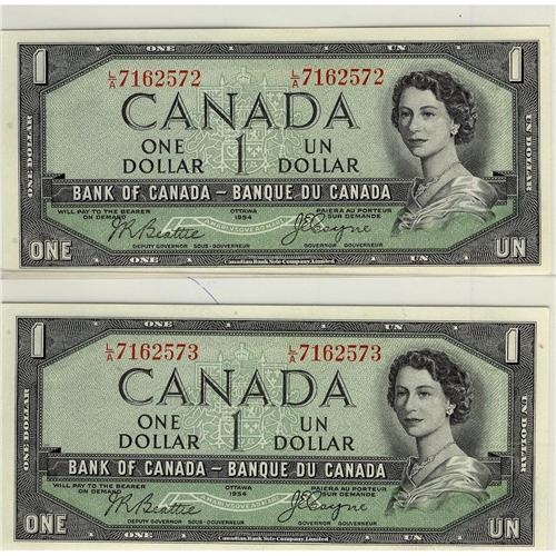 BC-29b 1954 $1 DF #LA7162572, #LA7162573. Lot of 2 cons