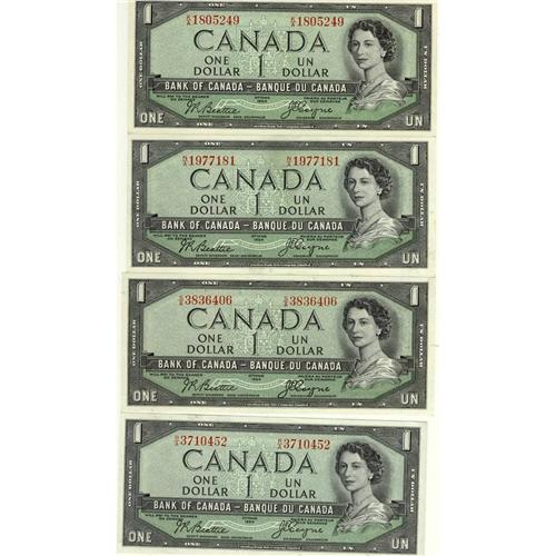BC-29b 1954 $1 DF. Lot of 4 notes AU to UNC.