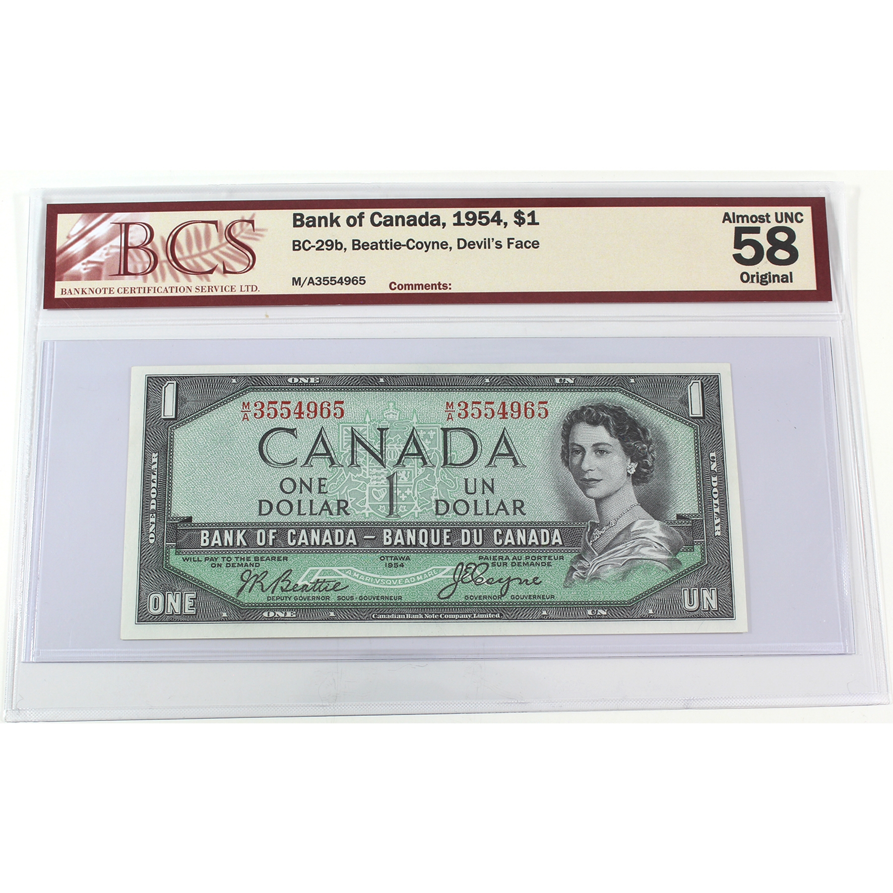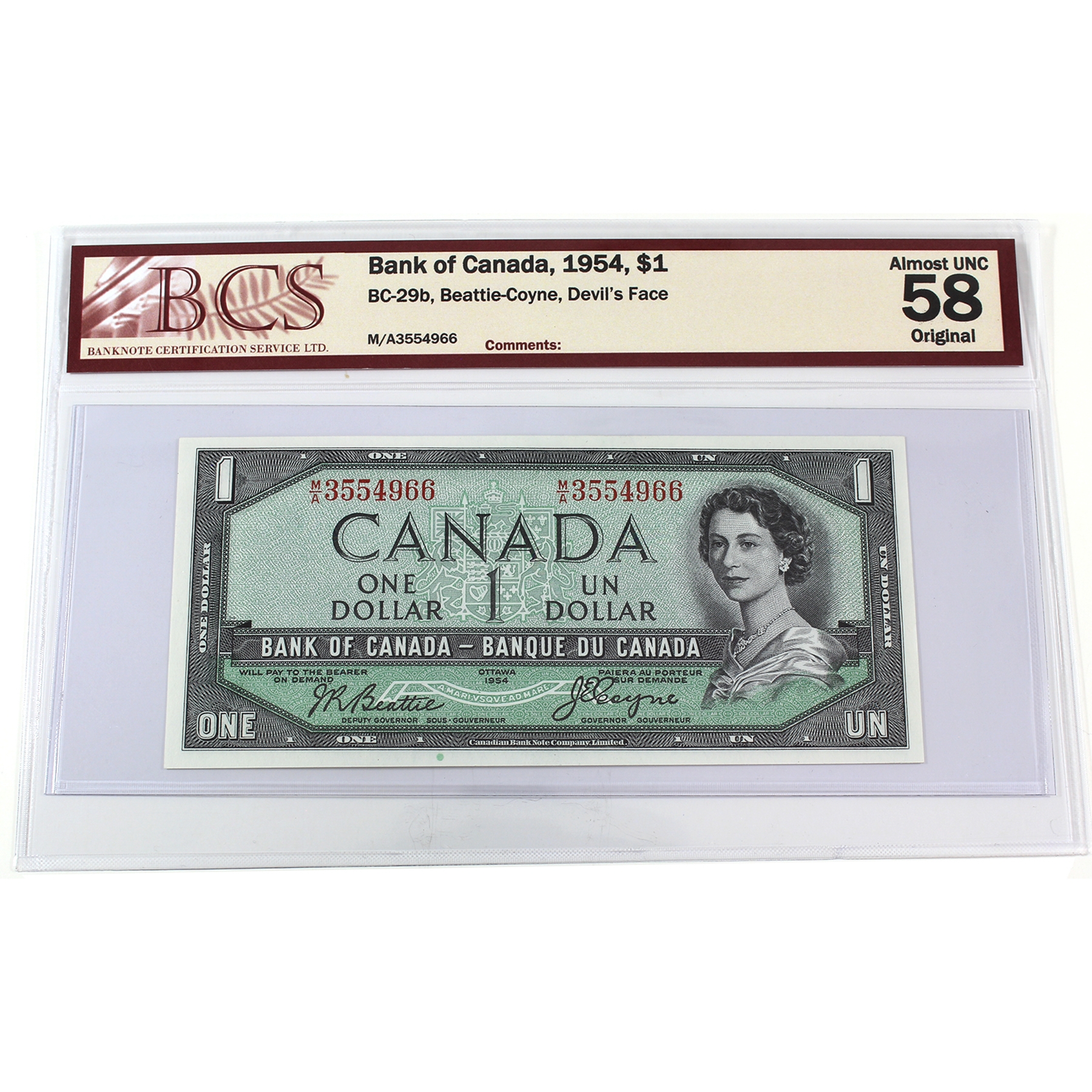 BC-29b 1954 $1 Devil's Face *Consecutive* BCS AU58 Original Beattie-Coyne SN: M/A3554965/"66. 2pcs.