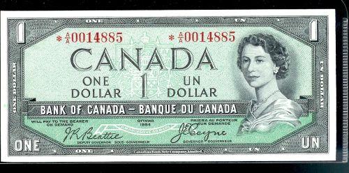BC-29bA 1954 $1 *A/A0014885 Beattie-Coyne; rare devils face replacement note. Gem Unc with full embossing. A lovely example.