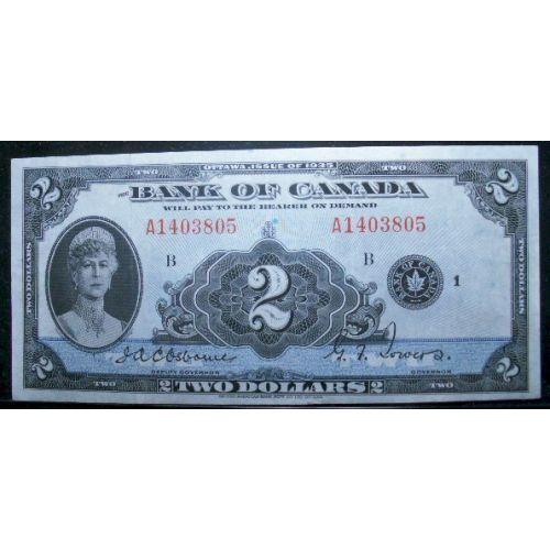 BC-3 1935 $2 A1403805 English text Bright EF note. Very light scuff on the obverse.