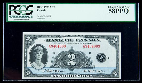 BC-3 1935A $2. PCGS Choice About New 58PPQ. A gorgeous example of this English text Deuce that features a portrait of Queen Mary, the consort of King George V. A single light fold is all that prevents this from being a much pricier note.