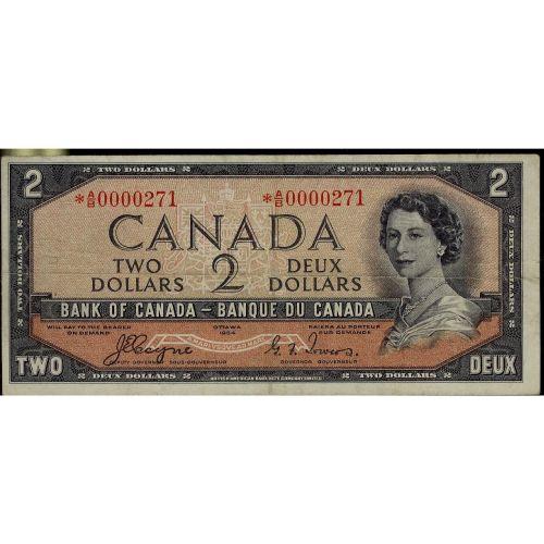 BC-30aA 1954 $2 Coyne-Towers "Replacement/Devil's face" with LOW serial # A/B0000271. VF. Only a few examples are known.