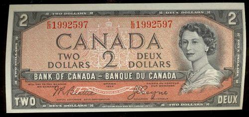 BC-30b 1954 $2 Beattie-Coyne Devil's face E/B1992597 Uncirculated.