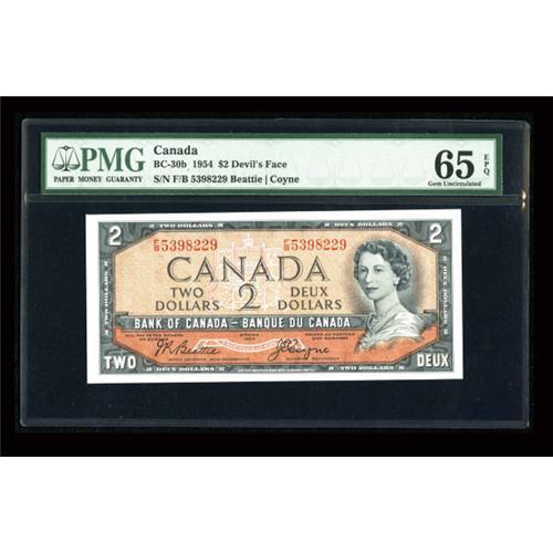 <B>BC-30b $2 Devil's Face 1954</B></I><BR> A lovely note which has received a grade of <B>Gem Uncirculated 65 EPQ </B></I>by PMG.<BR><I>From The John Ameen Collection</B></I><BR><BR><b>Shipping:</b> Coins & Currency (<a target="_blank" href="http://www.heritageauctions.com/common/shipping.php">view shipping information</a>)