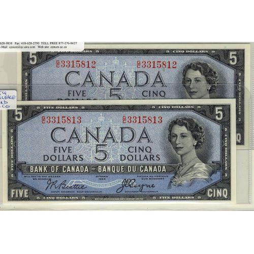 BC-31b 1954 $5 #G/C3315812 to 13, Lot of two consecutive Gem notes