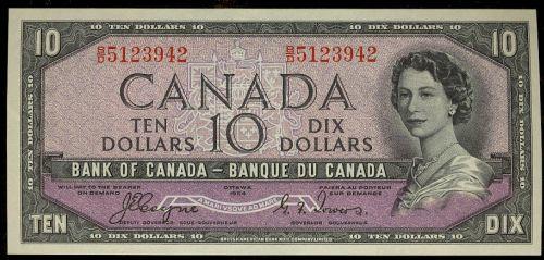 BC-32a 1954 $10 Coyne-Towers Devil's face B/D5123942 Original uncirculated with a couple counting creases.