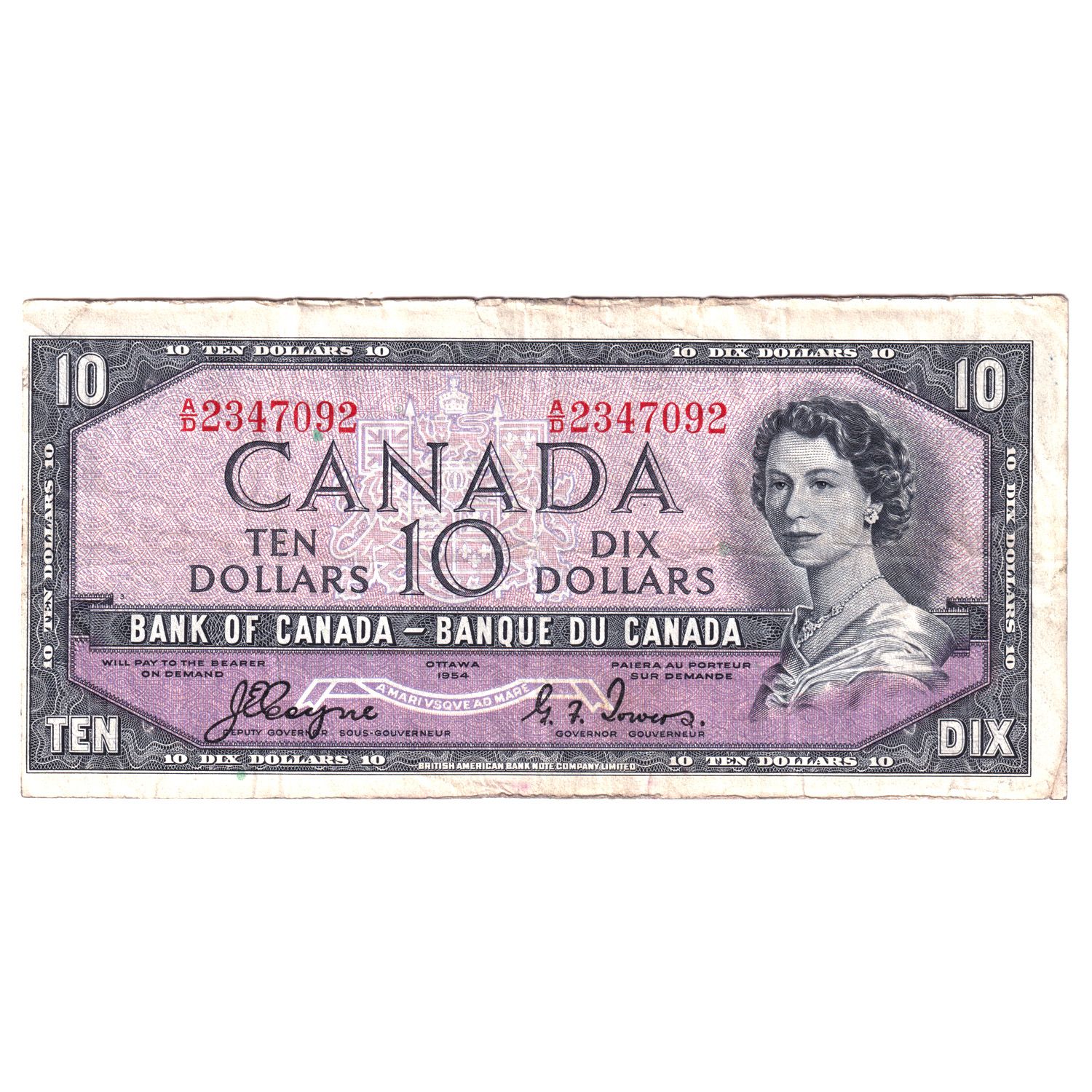 BC-32a-E25a-i 1954 $10 VF Coyne-Towers, Cut Off Size Note SN: A/D2347092 (Damaged)