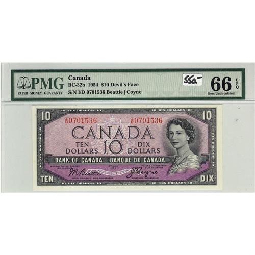 BC-32b 1954 $10 PMG Gem UNC66 EPQ. #ID0701536.