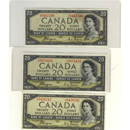 BC-33a 1954 $20 DF. Lot of 3 notes VF to EF.