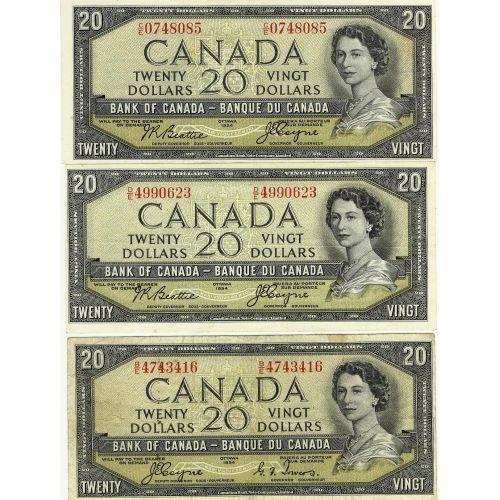 BC-33b 1954 $20 DF. Lot of 3 notes, BC-33a (2) and BC-33b (1).VF to EF,